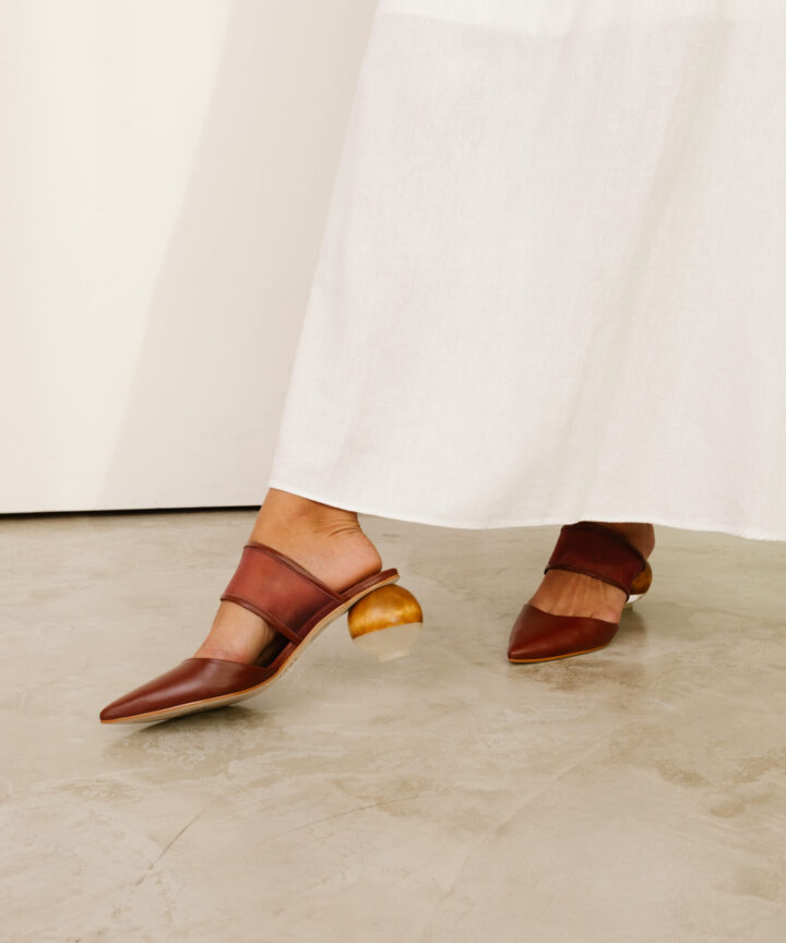 O Mule Tela e Couro Milos traduz sofisticação contemporânea em um design ousado e delicado ao mesmo tempo. Confeccionado artesanalmente em couro nobre, combina transparência e estrutura com recortes em tela, criando um efeito visual etéreo e elegante. O bico fino alonga a silhueta, enquanto o salto arredondado em madeira reforça a identidade autoral da Vess, unindo arte, e conforto em uma única peça.