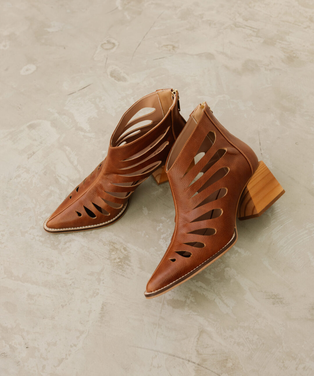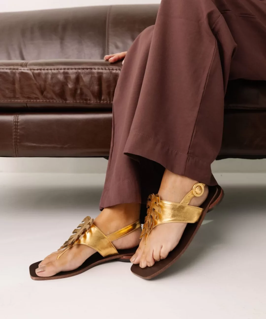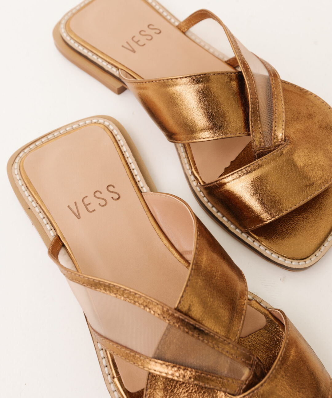 Sua construção combina o toque sofisticado do couro com a leveza da tela translúcida, criando um visual arejado e moderno. As tiras amplas cruzadas garantem conforto e sustentação ao caminhar, enquanto o acabamento artesanal revela a atenção aos detalhes que é marca registrada da Vess.