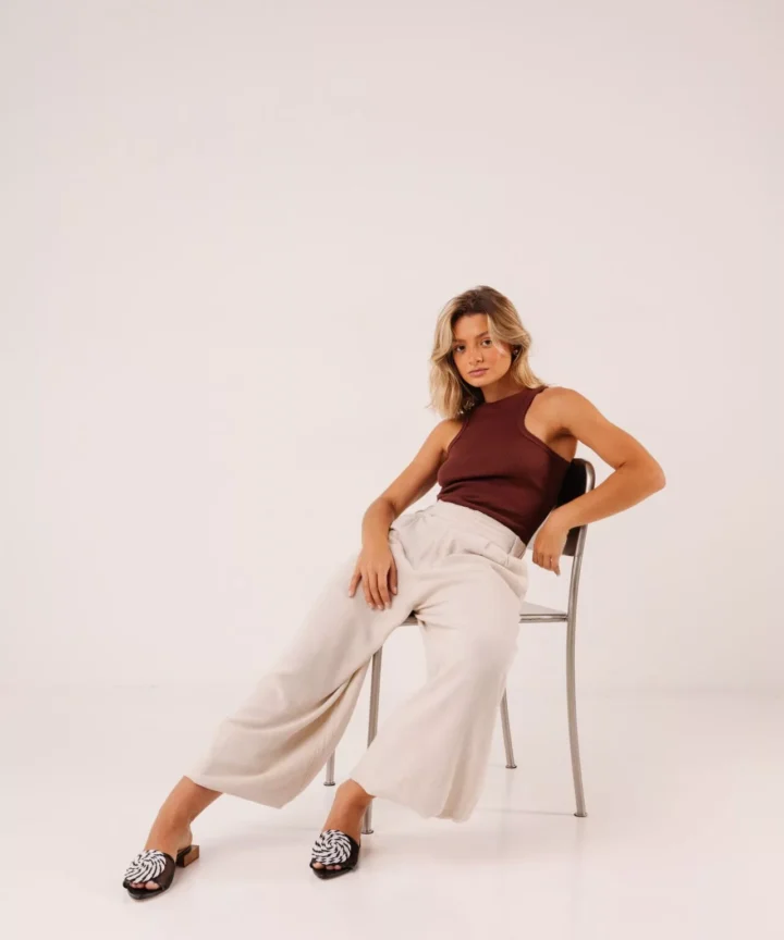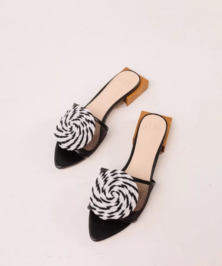 Inspirada na fluidez das formas orgânicas e na elegância natural, o Tamanco em Couro e Tela Ciréna traduz movimento e leveza em um design escultural.
