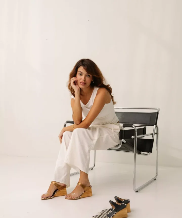 O Tamanco com Tira em Vinil Orbe é aquele toque de design que transforma o básico em algo marcante. Com salto geométrico em madeira e palmilha estampada em padrão xadrez, ele traz uma estética moderna e leve. A tira em vinil dá efeito visual elegante, deixando o pé em evidência sem perder o conforto, perfeito para quem ama detalhes que fazem diferença.