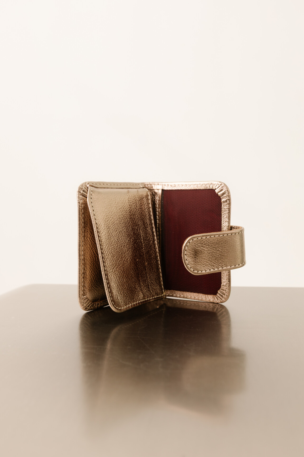 A Carteira Feminina em Couro traduz o equilíbrio perfeito entre funcionalidade e sofisticação em um acessório essencial para o dia a dia. Produzida em couro nobre metalizado, seu acabamento luminoso adiciona um toque contemporâneo e elegante, acompanhando diferentes momentos com discrição e refinamento. Compacta e prática, foi pensada para organizar cartões, documentos e valores de forma segura, mantendo leveza e praticidade dentro da bolsa. O design minimalista valoriza linhas limpas e atemporais, enquanto o fechamento garante proteção e facilidade no uso diário.