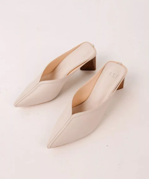Mule Salto Madeira Anari. Confeccionada em couro nobre, seu design minimalista em bico fino alonga a silhueta, enquanto o salto bloco em madeira adiciona um toque natural e contemporâneo. Um modelo atemporal que une sofisticação e conforto, perfeito para quem busca elegância descomplicada no dia a dia ou em produções mais sofisticadas.