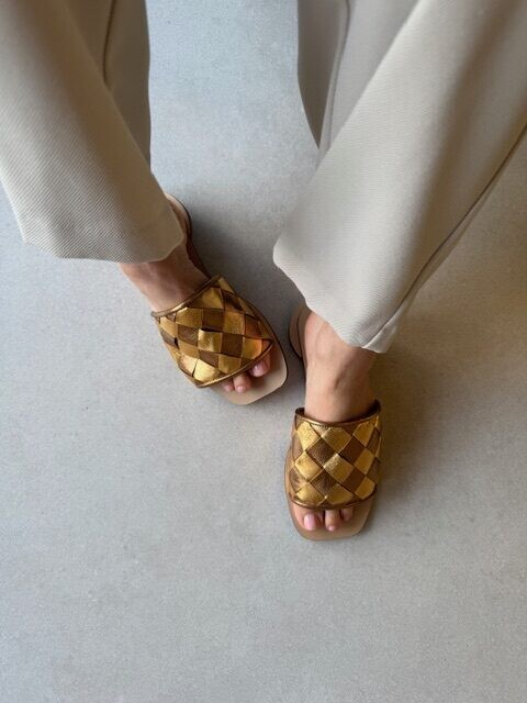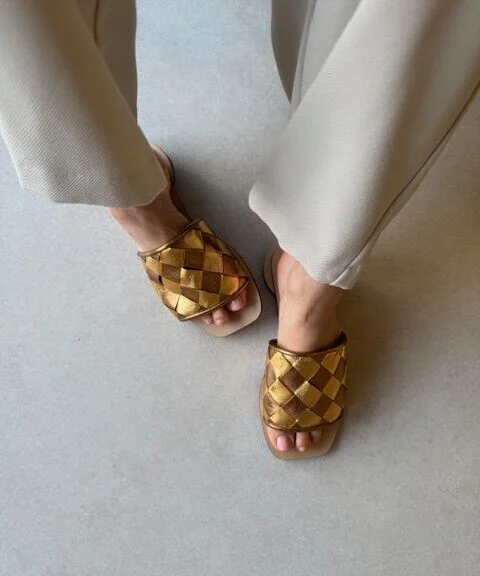 O cabedal em trama bicolor traz profundidade, textura e identidade, enquanto o design minimalista mantém o foco nos detalhes artesanais — um convite para mulheres que apreciam peças com personalidade e acabamento impecável. Um tamanco versátil que transita do casual refinado ao look urbano, elevando instantaneamente qualquer composição.