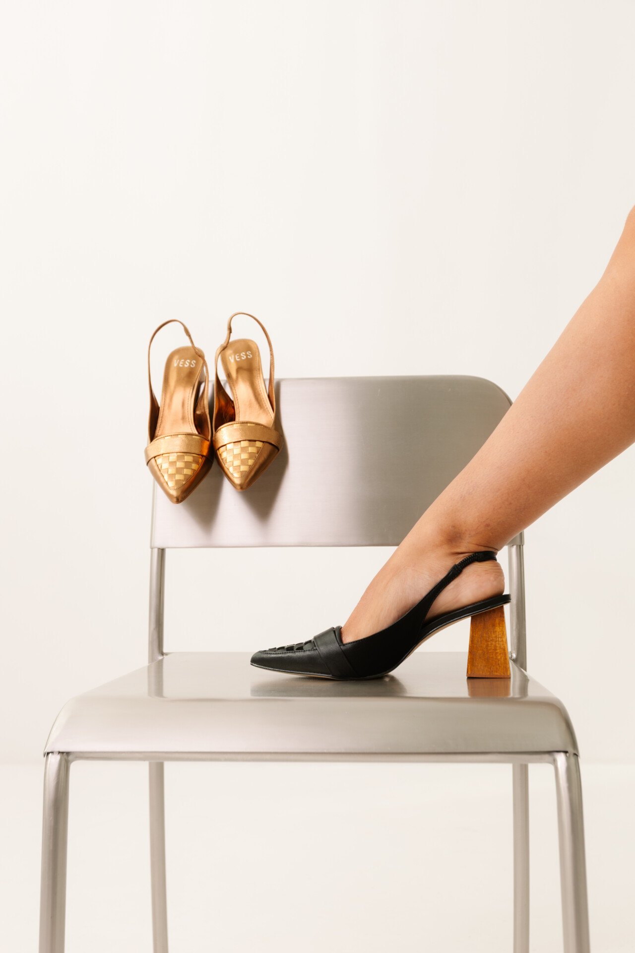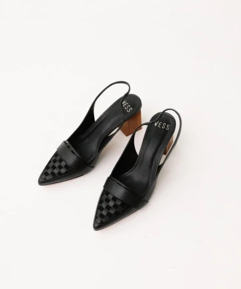 O Sapato Slingback em Couro Scacchi revela o poder dos detalhes. Seu cabedal em couro nobre ganha protagonismo com o trançado geométrico no bico, criando textura e profundidade em uma leitura sofisticada e contemporânea. A silhueta slingback, com abertura traseira e tira delicada, equilibra leveza e estrutura, enquanto o salto em madeira traz naturalidade ao design, um contraste refinado entre o artesanal e o moderno.